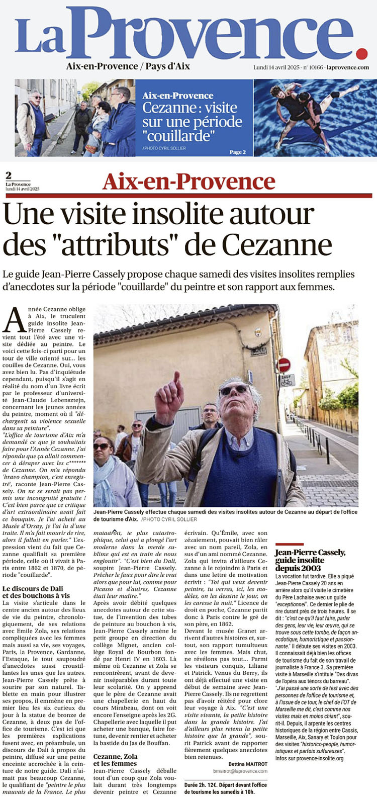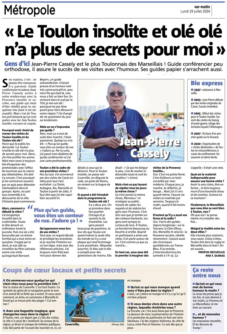 visites plus haut LA PROVENCE La Provence toutes éditions Deux pleines pages dans Var-Matin ce lundi 1er