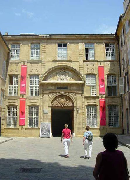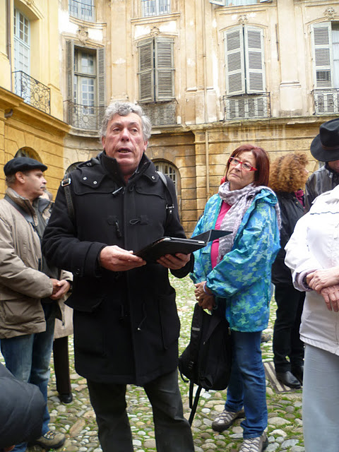 SERONT EVOQUES Col d’argent, grand père du célèbre Mirabeau - Evocation de la pendaison à un reverbère devant son hôtel de Pascalis, avocat au Parlement de Provence en 1790 - Les 2 G, les clients et les garçons célèbres de ce café emblématique dont le regretté Léon - Marius et les Teutons - Quizz 13 desserts - 2 mots sur Félicien Agard et sur les enfants d’Aix qui se moquaient du look de Cézanne - Siméon et Portalis - Mirabeau, anecdote de l’inauguration de la statue dans la cour de la mairie - Portrait de quelques ténors du barreau (Juvenal, Cabassol, Filippi) - La fête Dieu - Comment les aixois ont soutenu Charles Trenet emprisonné à Aix un mois en 1963. CERTAINS DE CES SUJETS SONT ÉVOQUÉS PLUS LONGUEMENT DANS L'AUTRE VISITE D'AIX : LIBERTINS & COURTISANES Honoré de Puget, seigneur des Prats, fait pendre place des Trois Ormeaux un paysan patriote qui refusait d’acclamer le conétable de Bourbon - Campra - Le Festival lyrique d’Aix. Portrait de Gabriel Dussurget et des premières vedettes, Capecchi, Stich-Randall, Berganza, Baquier etc - Marcel Provence - Les farces de Gaspard de Venel - Le poête Humilis qui venait mendier devant la cathédrale - Le Quizz des maximes de Vauvenargues - Aix et Marseille éternelles rivales - L’assassinat de Jean-Baptiste d’Albertas - Les “eggs en Provence” (oeufs de dinosaure fossiles de la Sainte Victoire) comme les appellent les paléontologues anglo saxons - Le marbre du Tholonet - Les lettres noires de l’abbé Rive. Visitez la page Mascaronade pour participer à notre jeu de pistes sur les mascarons (masques au dessus des portes et fenêtres). Ne manquez pas la page "fontaines" pour tout savoir sur les 1000 fontaines (en fait 40 fontaines publiques) d'Aix... Une bibliographie est remise à chaque "promeneur". AIX VIP AVEC VISITE D'UN HÔTEL