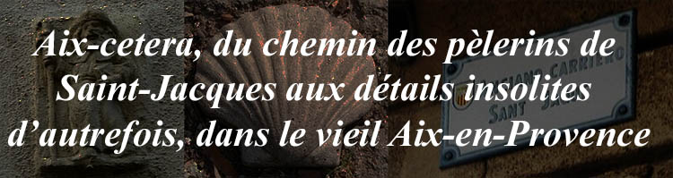 Je vous propose une nouvelle visite guidée qui va vous permettre de suivre l'itinéraire des pèlerins de Saint-Jacques dans Aix intra-muros. Oui, car vous ne le savez peut-être pas, Aix fut une étape importante du chemin de Saint-Jacques. En effet, les Italiens ou les habitants du Sud-Est de la France qui partaient pour Compostelle passaient obligatoirement par Aix pour rejoindre le chemin "officiel" à Arles. Et ils y repassaient au retour quand ils n'avaient pas laissé leur peau sur le chemin ou dans les auberges où rodaient les détrousseurs. ![]() Cet itinéraire dans la ville est balisé de manière indubitable par une série de marqueurs physiques (statues, statuettes) et par la toponymie, la science qui étudie les noms de lieux. Rues, portes et hôpitaux, jusqu'au choix du prénom "Jacques".