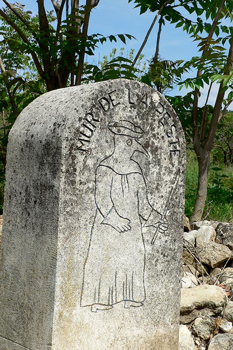 pour toute question sur mon mail : Prévoir chaussures de marche car 2 heures de chemin de terre caillouteux avec une déclivité totale de 165 mètres. Prévoir de l’eau et une protection en cas de pluie. Distance à parcourir en voiture : depuis Marseille 85 km. Trajet : compter 1h15 environ. Depuis Aix, 70 km. Trajet compter 1h05 environ. MATIN Petite randonée à pied (2 heures) le long du Mur de la Peste En 1720, le Grand Saint-Antoine apporte la peste à Marseille. 100 morts par jour au début du mois d’août, 1 000 par jour à la fin du même mois... En Provence c’est la panique et tout est fait pour empêcher les fuyards de Marseille de pénétrer dans les villages encore à l’abri du mal. C’est dans ce contexte que la France demande à l’État d’Avignon et au Comtat Venaissin, toutes deux terres pontificales, de construire le mur de la peste de créer un cordon sanitaire pour arrêter l’épidémie de peste. Antoine d’Allemand, architecte carpentrassien se met au travail et dessine un mur en pierres sèches d’une hauteur de 6 pieds (1,95 m) et d’une largeur de 2 pieds (0,65 m). La longueur du mur, qui allait de Cabrières d’Avignon à “la ligne de la Durance” en aval de Merindol, était de 25 km. Le circuit pédestre qui part de Cabrières d’Avignon permet de longer ce mur sur un peu plus d'un kilomètre. Le chemin du retour s’effectuera en descente agréable par le chemin des “fileuses”. Le nom de ce chemin vient de l’époque de la culture du ver à soie en Provence. Les filatures de Gordes ayant brûlé, les fileuses de soie durent aller chercher du travail plus loin et notamment à Fontaine-de-Vaucluse, à 10 km, où elles se rendaient à pied quotidiennement, par ce sentier qui raccourcissait notablement le trajet (ce qui faisait quand même 3 heures aller-retour). MIDI PIC-NIC AU BOIS DE CÊDRES Tables en dur,