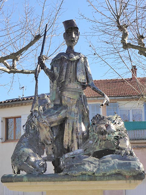 Montée en voiture à ND des Anges où nous verrons la planète Neptune et où nous visiterons la chapelle et sa collection d'ex-voto dont un très insolite suspendu au plafond. Il s'agit d'un crocodile à moins que ce soit une alligator ou bien, qui sait ? Un caïman ! A Pignans nous ne manquerons pas de rendre visite à la statue de Jules Gérard officier des Spahis, chasseur de fauves et écrivain cynégétique dit "le tueur de lions". Statue et maison natale. Ainsi que le beffroi surmonté d'un magnifique campanile copernicien.