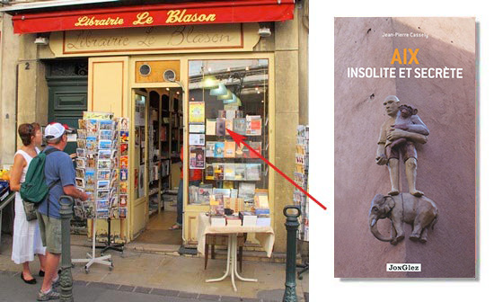 librairie le Blason 11, rue Jean de la Roque, Aix-en-Provence, tél : 04 42 63 12 07 Librairie spécialisée dans la Provence et dans l'accueil hyper sympathique. Vous y trouverez entre autres tous mes guides : Aix insolite et secrète, Marseille insolite et secrète, Provence insolite et secrète, Côte d'Azur insolite et secrète, Toscane insolite et secrète Toscane (signée d'un pseudo : Carlo Caselli)... |