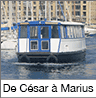 Si vous prenez mon titre au pied de la lettre, voici les deux personnages dont je devrais vous parler essentiellement au cours de ma visite : Jules César (100 av. J.-C. - 44 av. J.-C) et Caïus Marius (157 av. J.-C. - 86 av. J.-C) .En ce qui concerne Jules César, c'est bien normal de l'évoquer car il a bien (ou plutôt mal) connu Marseille. La cité phocéenne ne voulant pas prendre parti pour lui contre Pompée (guerre civile romaine), il nous a imposé un long siège qui s'est soldé par notre reddition. Quant à Caïus Marius, est-il venu à Marseille, nul ne le sait. En revanche, tout Provençal sait que Marius arrêta les barbares Cimbres et Teutons sous la montagne Sainte-Victoire qui porterait d'ailleurs ce nom en souvenir de cette bataille (ce qui est probablement faux)... Oubliés pendant des siècles, les prénoms romains sont revenus en force à la Révolution Française comme une rupture avec les prénoms de l'Ancien Régime. On va trouver des Brutus, des Cécilia, des César, des Aggripa, des Titus, des Antonia et des Marius. A noter que ce dernier prénom a été souvent utilisé comme le masculin de Marie afin d'afficher de manière habile sa dévotion à la Vierge ! Le RV pour le départ de cette visite se fait sous l'ombrière du Vieux-Port, sur le quai de la Fraternité. Et nous commencerons avec l'évocation de l'auteur de la Trilogie Marseillaise, Marcel Pagnol qui, dans la préface de Marius, a exprimé de manière très émouvante son amour pour Marseille : "je ne savais pas que j'aimais Marseille !..." Marius créé au Théâtre de Paris, rue Blanche à Paris le 9 mars 1929 avec 800 représentations à guichet fermé.
