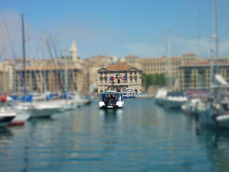 Disons-le tout de suite, l'actuel "Bar de la Marine" n'existait pas du temps de la Trilogie. Dans les trois films, la façade du bar a changé de rive et toutes les scènes intérieures ont été tournées en studio. Qu'importe, le café est décoré en hommage à Marius et César. Et puis nous nous posterons sur l'embarcadère du fameux Ferry-Boat où le César, le bien-nommé, nous proposera la plus courte traversée maritime au monde (283 mètres) !!! Quant au nouveau qui assure la ligne Quai de la Fraternité - MUCEM, il a bien changé depuis le temps du capitaine Escartefigue puisqu'il fonctionne à l'énergie solaire et n'a plus besoin de Maupi, irremplaçable mécano du navire.