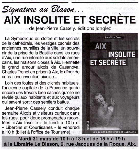 | Le Courrier d'Aix 28 mars 2009 |